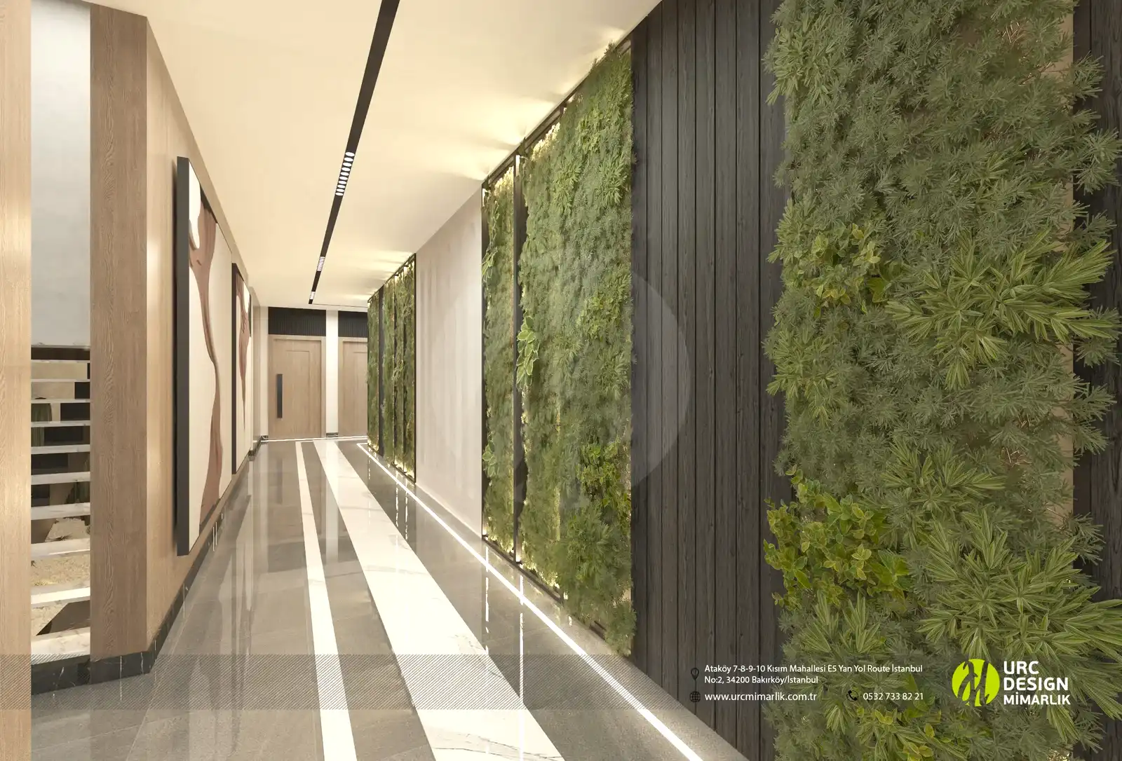 Mekanın ferahlığını artırmak için doğal malzemeler tercih edilmiş ve yeşil bitki dokunuşlarıyla iç mekan doğayla bütünleştirilmiştir. Bu tasarım öğeleri, sadece estetik değil, aynı zamanda klinik ortamında rahatlık ve huzur duygusunu artırarak tedavi sürecine olumlu bir etki yapar. "İstanbul'da Klinik" projesinin ferah atmosferi, hastaların huzur içinde vakit geçirmesini sağlayarak, tedavi sürecinin daha olumlu ve destekleyici bir deneyim olmasına olanak tanır.