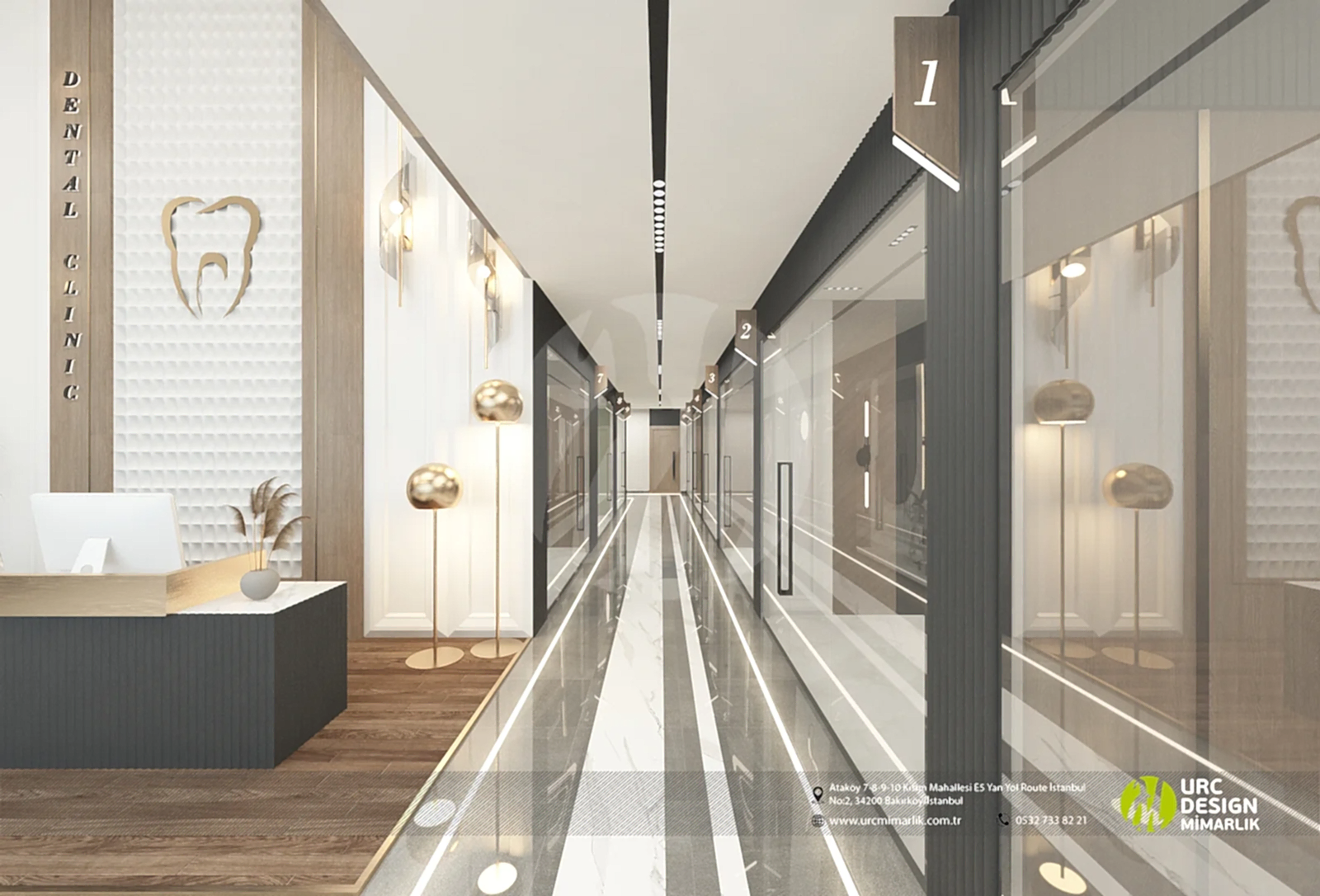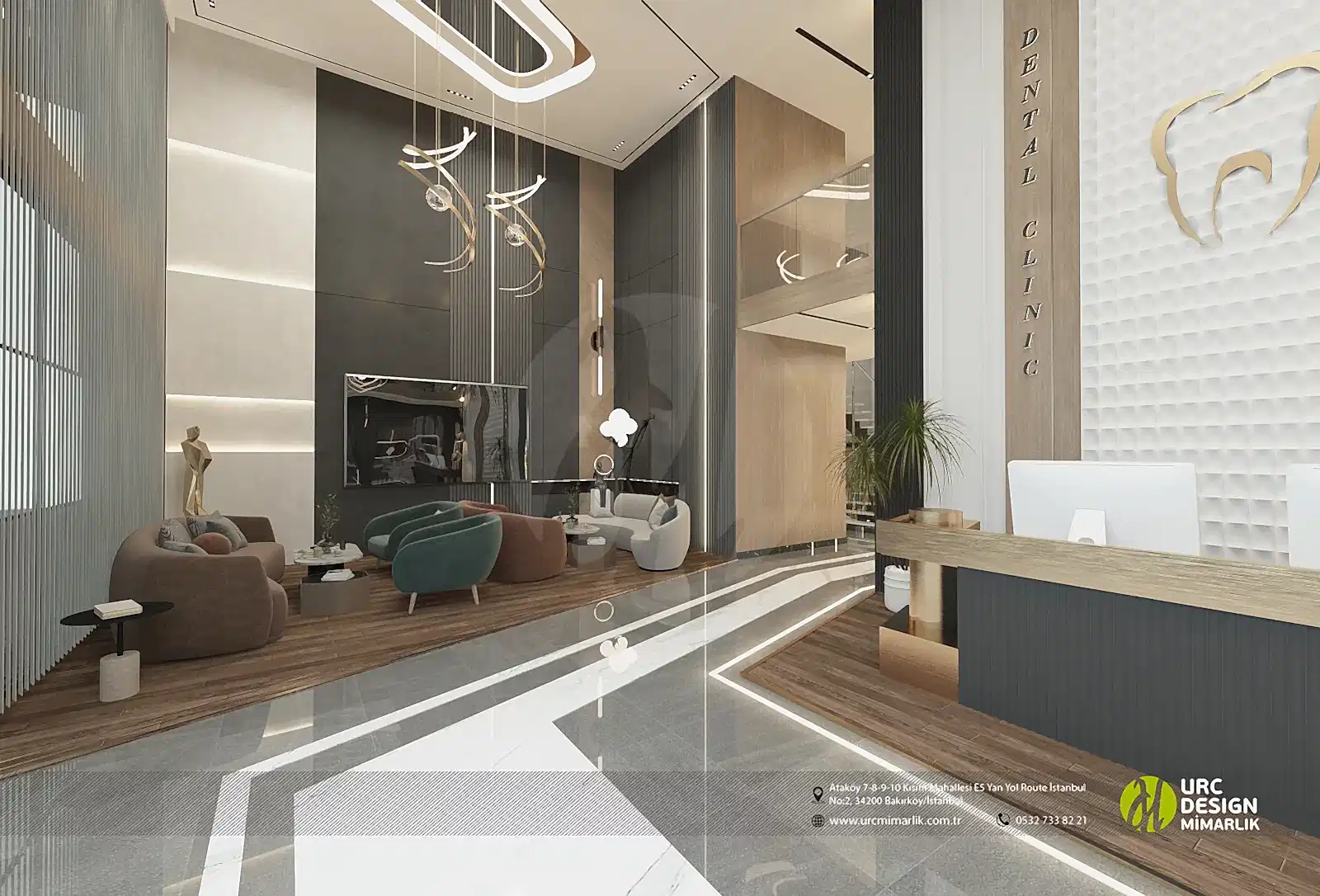Zemin tasarımı, dayanıklı ve hijyenik malzemelerin seçimiyle, klinik ortamında hem estetik hem de fonksiyonel bir denge sağlamayı hedefler.